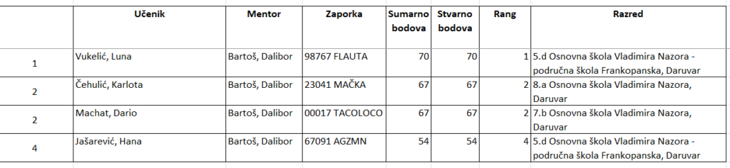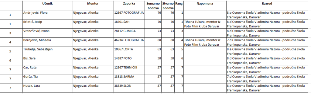 Školsko natjecanje iz tehničke kulture održano je od 9. do 12. veljače 2026. godine. 45 učenika natjecalo se u 12 kategorija. U provedbi natjecanja su nam pomogla i tri kluba Foto Film klub Daruvar, Radio klub “Jan Hus” Daruvar i Zajednica tehničke kulture Daruvar.