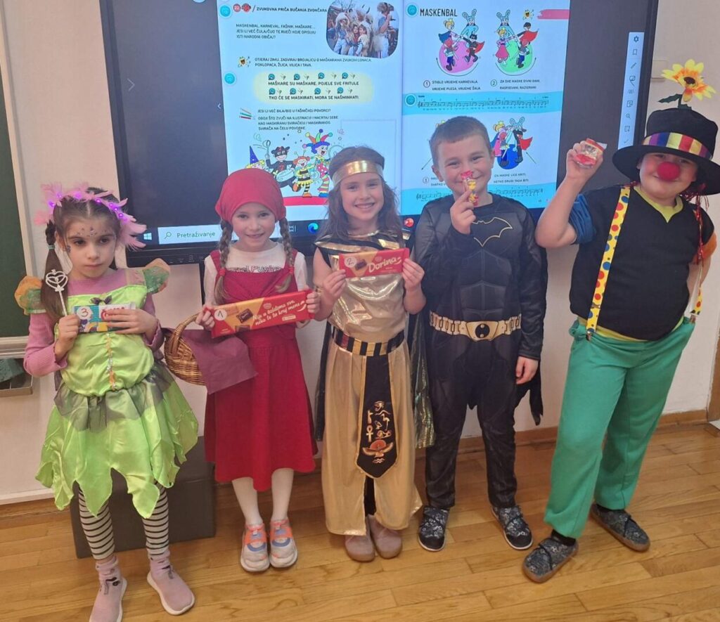 Djeca su pokazala iznimnu kreativnost – od princeza, superjunaka i životinja pa sve do originalnih, ručno izrađenih maski. Tijekom maškaranog dana učenici su sudjelovali u raznim aktivnostima: izbor najkreativnijih i najoriginalnijih maski, zajedničke igre i ples, te fotografiranje i druženje u veselom raspoloženju.